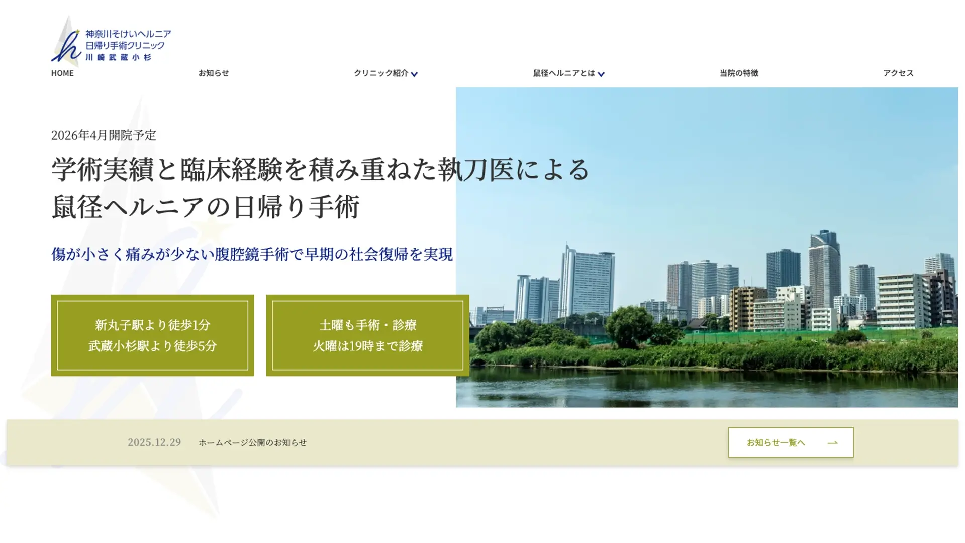 神奈川そけいヘルニア日帰り手術クリニック 川崎武蔵小杉様|ホームページ制作